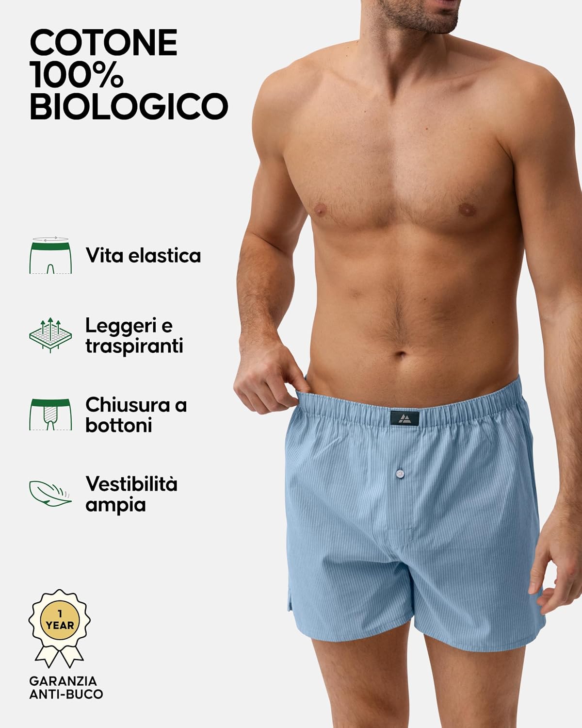 Realizzati in 100% Cotone Organico, i nostri boxer sono morbidi a contatto con la pelle