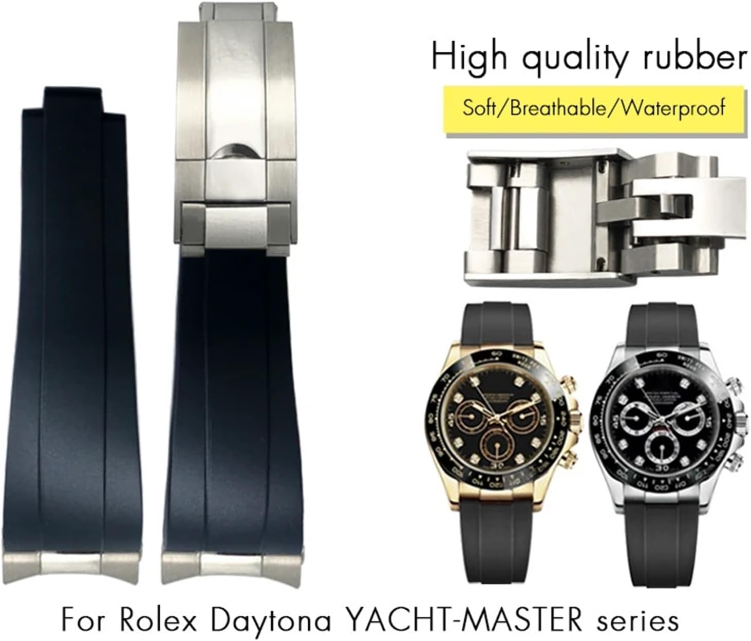 HAODEE Cinturino corto in silicone da 20 mm e 21 mm, con fibbia corta, adatto per Rolex Daytona Submariner Rolex Daytona Submariner Rolole OYSTERFLEX Yacht Master