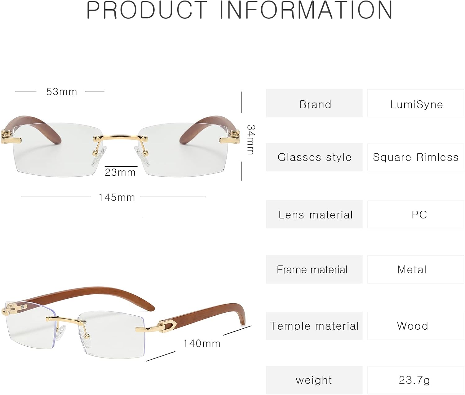 Home / Generale / LumiSyne Occhiali Da Sole Quadrati Senza Montatura Donna Uomo Astine In Legno Le…