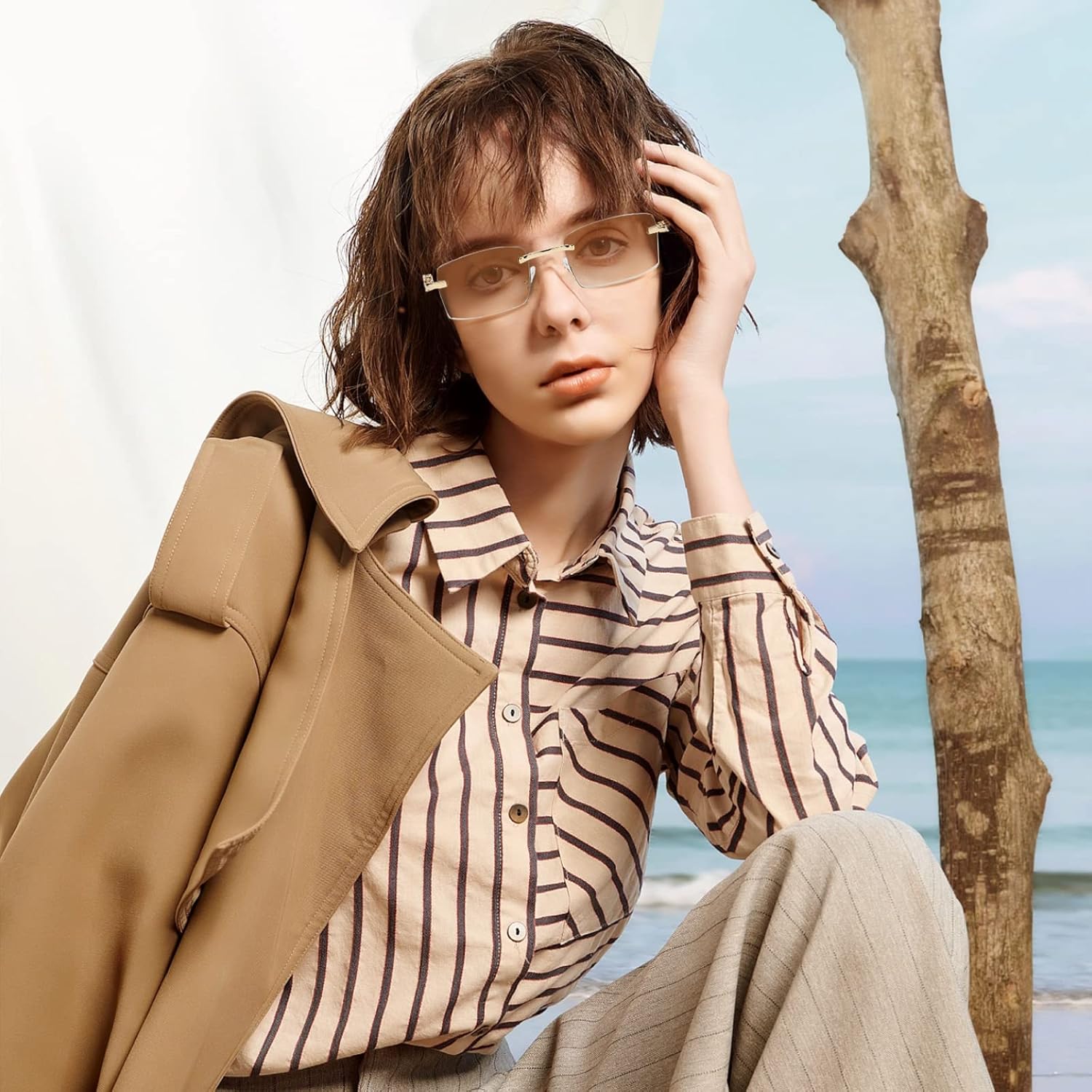 Gli occhiali da sole senza montatura conferiscono un aspetto squisito e chic, mentre la forma a rettangolari interpreta il classico stile rétro.