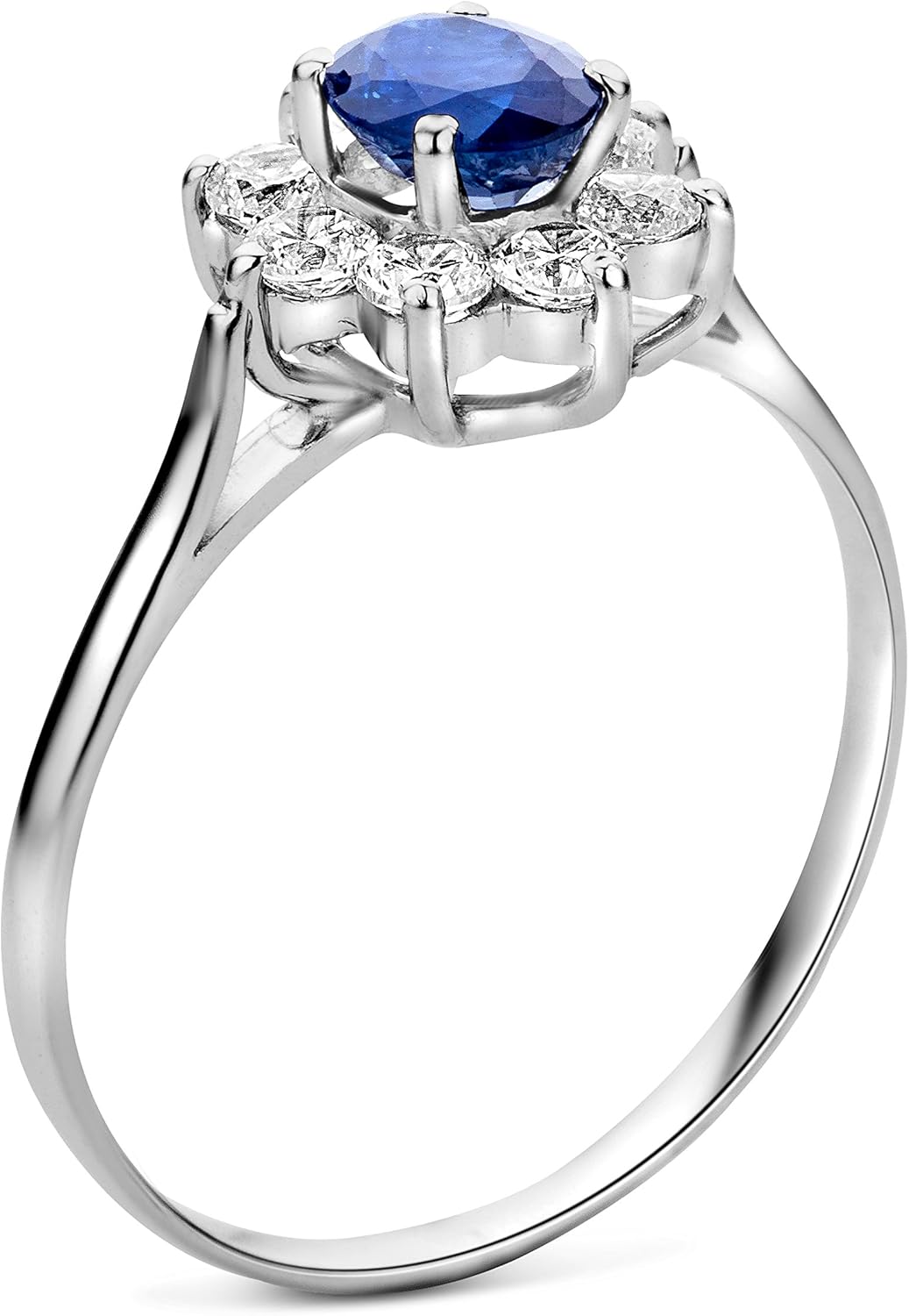 Miore Anello da Donna in Oro Bianco 9K, Taglio Brillante