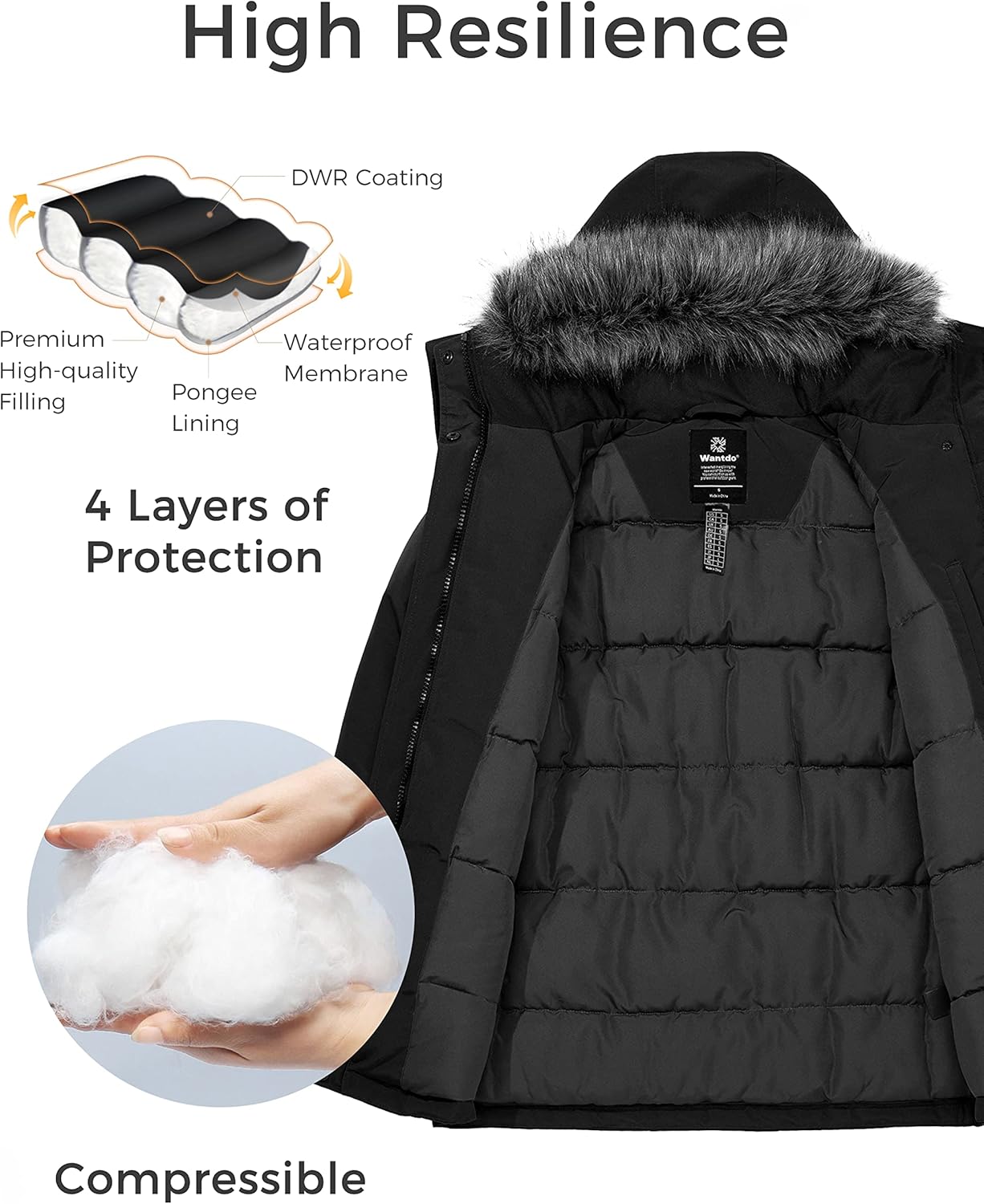 Wantdo Giacca Invernale Imbottita Calda Parka con Pelliccia Esterno Giaccone da …