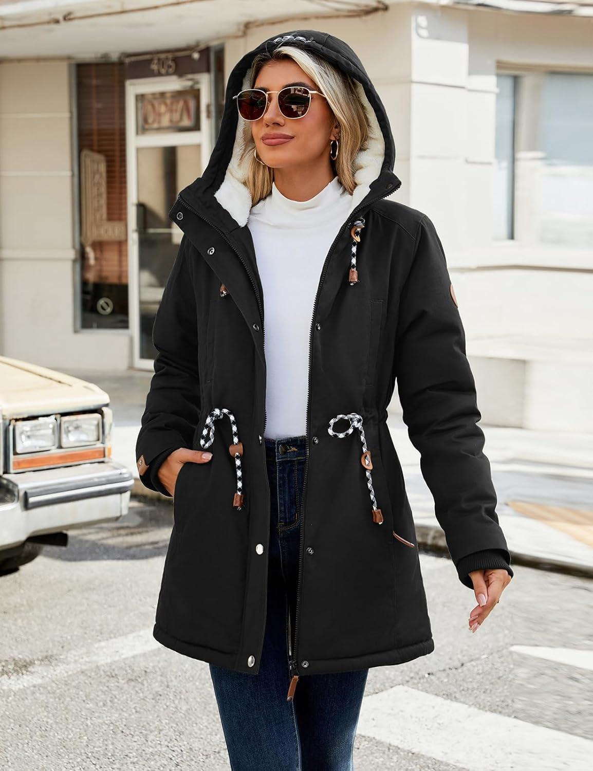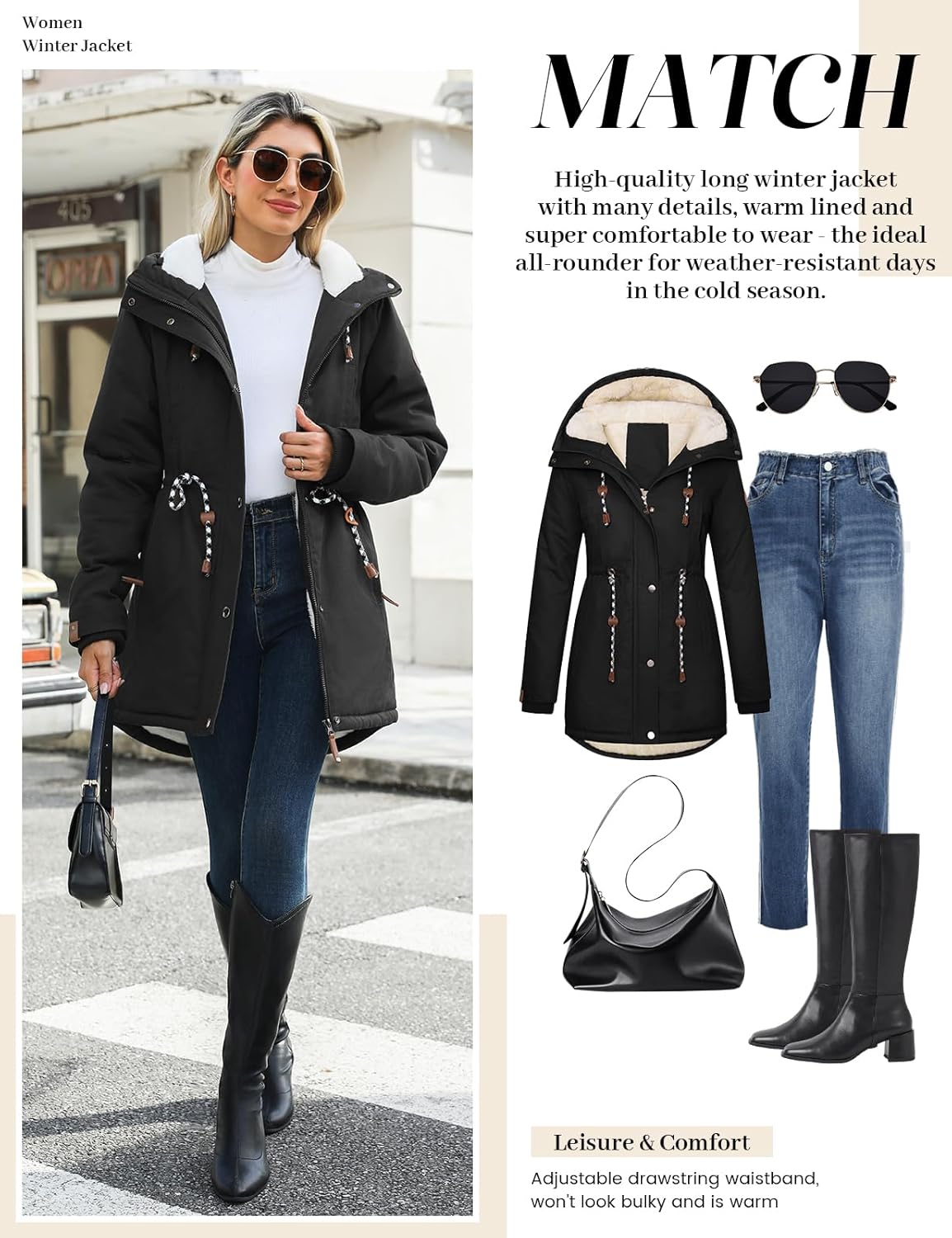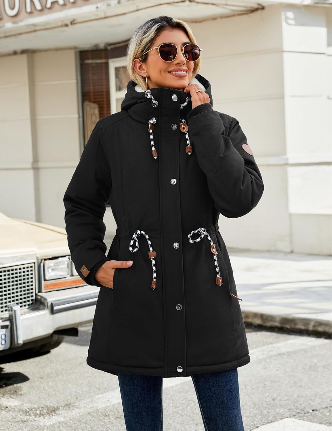 Polsini a coste: I polsini a costine aiutano a tenere fuori l’aria fredda, assicurandoti di rimanere al caldo per tutto il giorno.Cappuccio: La calda giacca invernale è dotata di un cappuccio regolabile con coulisse. Il cappuccio foderato in pile vi terrà al caldo e vi darà una sensazione di lusso.